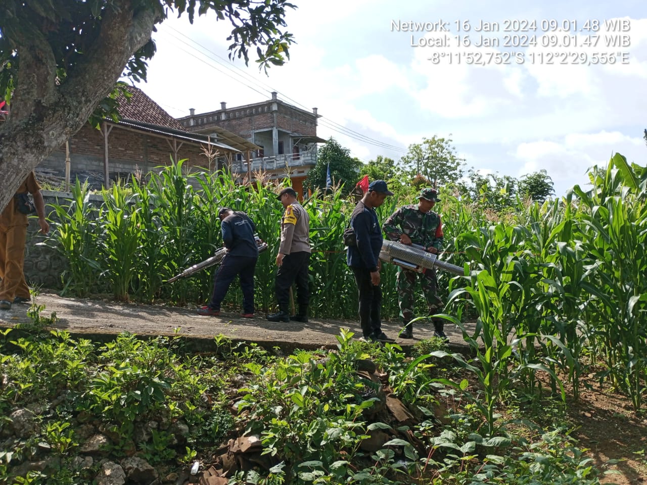 Kegiatan penyemprotan fogging ini, dilaksanakan di RT. 03 RW. 03 Dusun Boto Desa Pakisaji Kec. Kademangan Kab. Blitar, Selasa (16/1/2024).