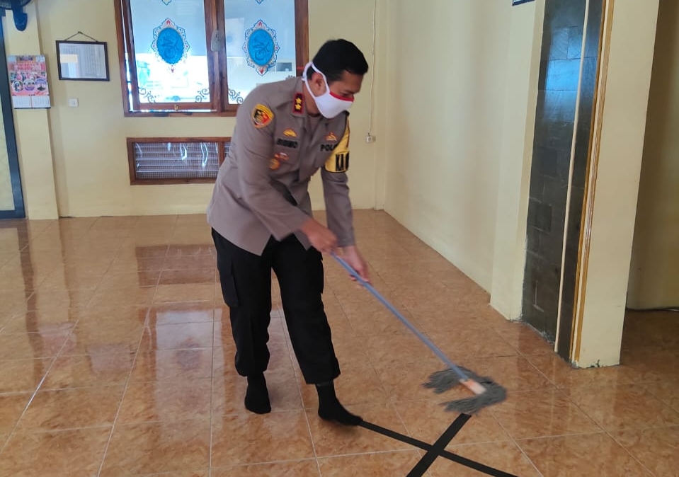 Selain kegiatan bersih bersih, Polres Majalengka juga melakukan pemasangan pembatasan shaf untuk melaksanakan protokol social dan physical distancing sehingga peribadatan tetap berjalan dan protokol pencegahan penyebaran covid-19 tetap berlaku.