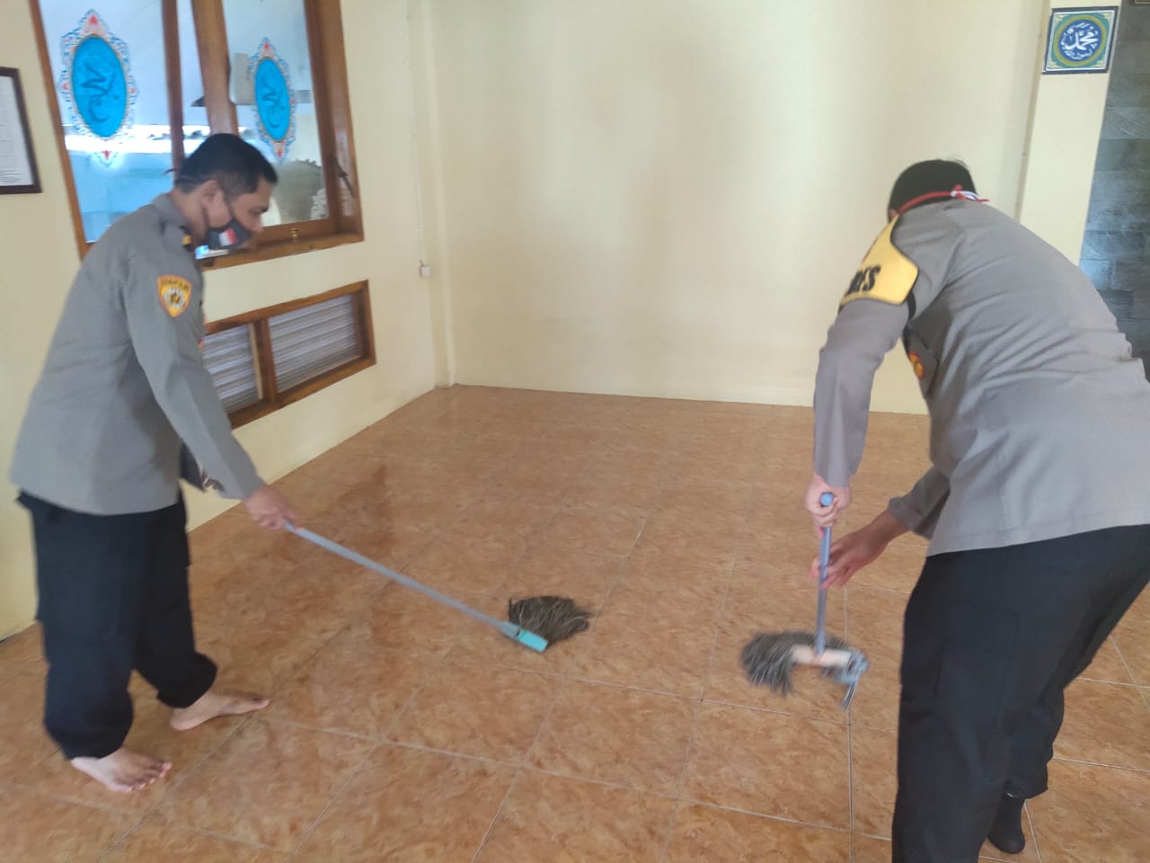 Berita Polres Majalengka, Kepolisian Resor Majalengka menggelar Aksi Bersih bersih dilingkungan Mesjid Al Jamiussolih Polres Majalengka dalam rangka Jumat bersih dan pencegahan penyebaran Virus Covid-19, Jumat (29/5/2020).