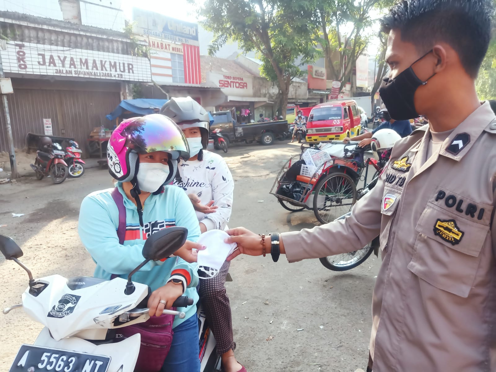 “Ya, Sat Binmas Polres Lebak Polda Banten terus Keliling berikan Himbauan Prokes dan Bagikan Masker ke Warga masyarakat di areal kota Rangkasbitung Kabupaten Lebak,” ujar Wawan.