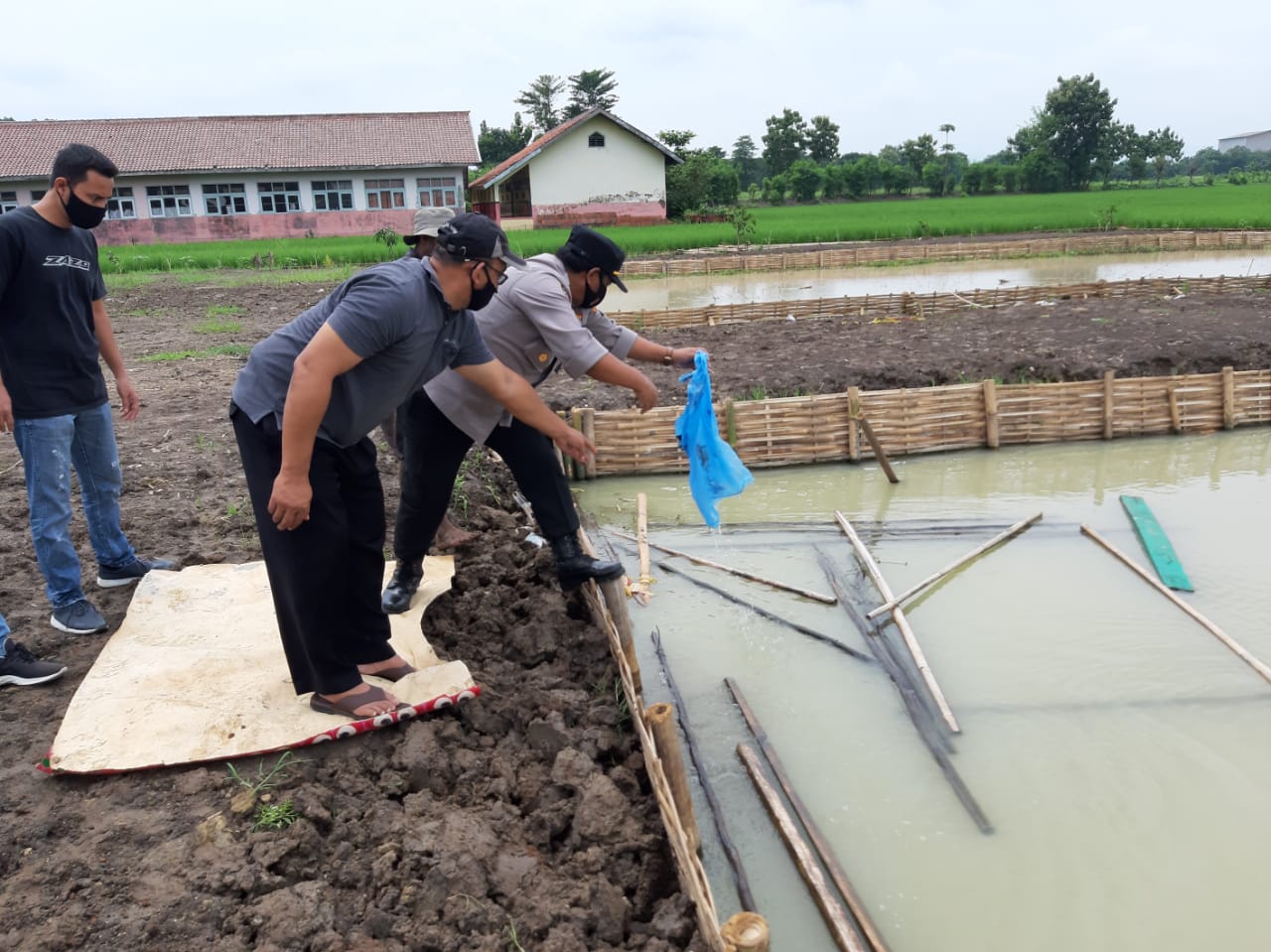 “Hari ini Polsek Dawuan Polres Majalengka menyerahkan Bibit ikan dan bibit pohon dalam rangka ketahanan pangan Polsek Dawuan sekaligus menaburkan sebanyak 7000 ikan Nila dan melakukan penanaman pohon dibelakang Polsek Dawuan dilokasi Kolam Desa Sinarjati Kecamatan Dawuan Kabupaten Majalengka.” kata AKP Arif Budi Hartoyo di sela – sela kegiatannya.