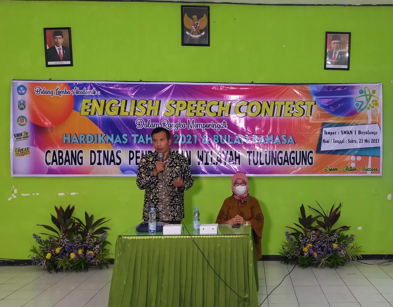 Kendati demikian pihaknya berterima kasih kepada semua pihak yang sudah hadir, khususnya Seluruh jajaran Guru dan staf SMKN 1 Boyolangu,serta siswa siswi yang sudah mengikuti ajang lomba pidato bahasa inggris dan juga yang sudah ikut serta berpartisipasi dalam memujudkan Peringatan (HARDIKNAS) Hari Pendidikan Nasional ,di wilayah cabang Dinas Pendidikan Provinsi Jawa Timur , Kabupaten Tulungagung.