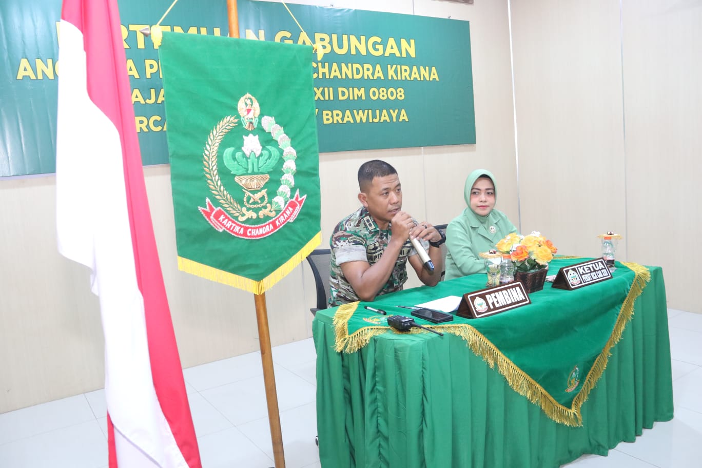 Kodim Blitar – Dandim 0808/Blitar Letkol Inf Sapto Dwi Priyono, S.E., di dampingi Ketua Persit KCK Cabang XXII Ny. Vivi Sapto Dwi Priyono, pada pertemuan gabungan anggota Persit KCK sejajaran Cabang XXII Dim 0808, memberikan pengarahan kepada anggota Persit, bertempat di Aula Shodancho Soeprijadi Kodim 0808, Jl. A. Yani No.06 Kel / Kec. Kepanjenkidul Kota Blitar, Jumat (24/11/2023).