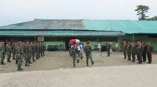Dandim 1710/Mimika Letkol Inf Dedy Dwi Cahyadi menyampaikan atas nama Negara dan Tentara Nasional Indonesia, Keluarga Besar Kodim 1710/Mimika serta seluruh yang ditinggalkan, kami memberikan penghargaan yang setinggi-tingginya disertai doa yang tulus, semoga arwah almarhum diterima disisi Tuhan Yang Maha Esa.