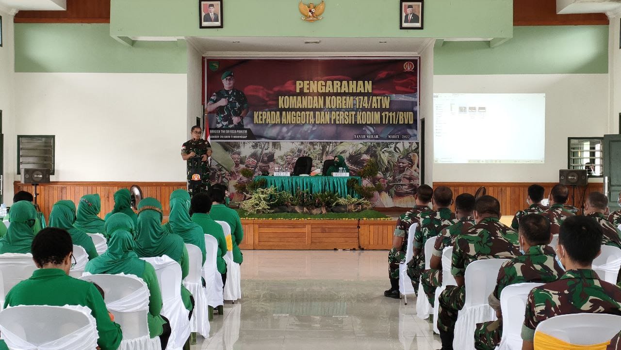 Mengawali sambutannya, Danrem 174 Merauke Brigjen TNI E. Reza Pahlevi mengucapkan terima kasih kepada Dandim beserta keluarga besar Kodim 1711/BVD atas sambutan yang telah diberikan pada hari ini di Makodim 1711/BVD.
