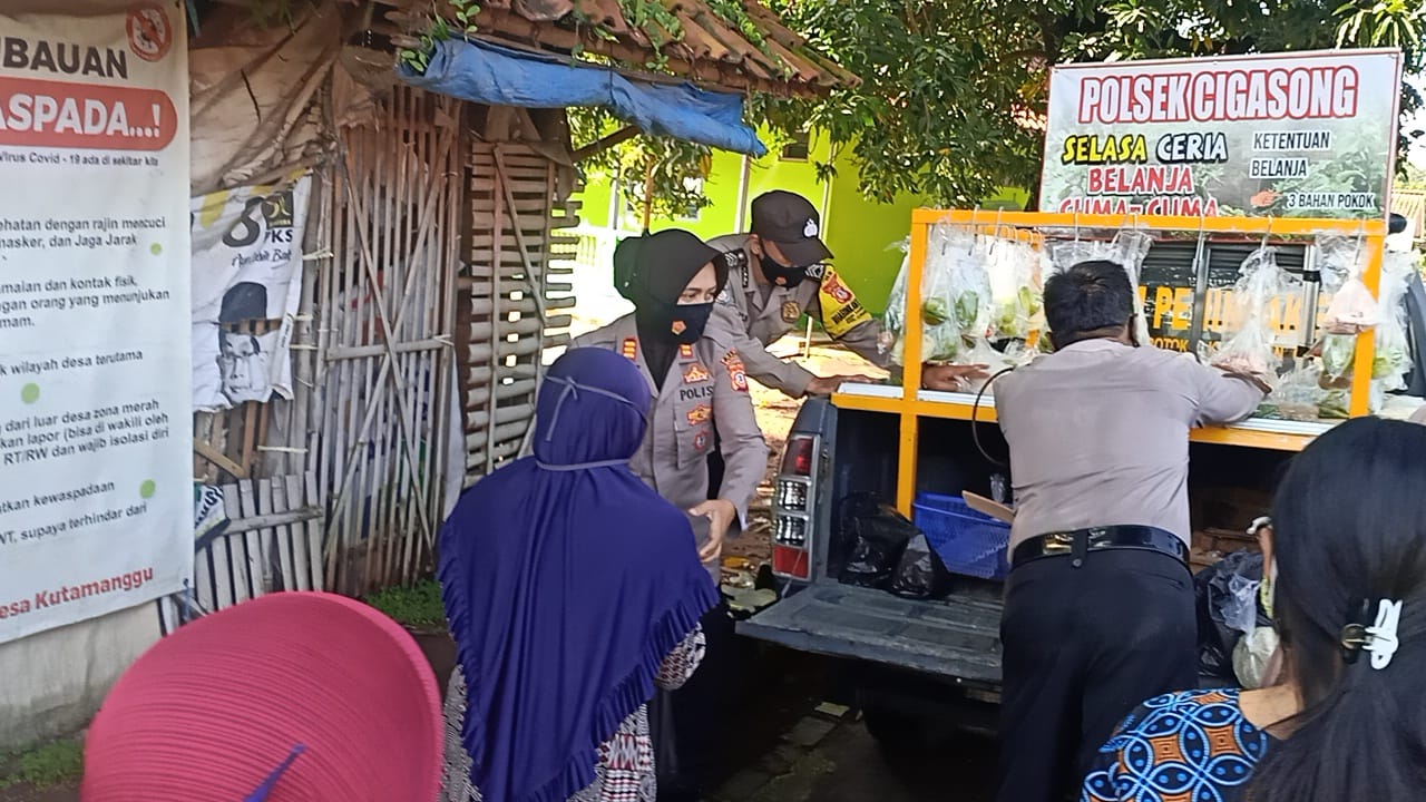 Berita Polres Majalengka–, Program Unggulan Polsek Cigasong Polres Majalengka, Selasa Ceria Belanja Cuma Cuma, terus dilakukan di Wilayah hukum Polsek Cigasong dengan cara berkeliling menggunakan kendaraan Patroli yang membawa sembako untuk diberikan secara cuma-cuma kepada warga masyarakat yang membutuhkan/terdampak Pandemi Covid 19.