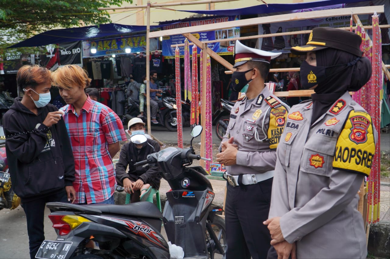 Berita Polres Banjar Polda Jabar – Berlokasi di Pasar Langensari Kota Banjar Kapolres Banjar AKBP Melda Yanny, S.I.K.,M.H. bersama Kasat Lantas serta personel Sat Lantas dan Polsek Langensari sampaikan imbauan protokol kesehatan kepada warga masyarakat yang sedang Ngabuburit. (01/05) Sore.