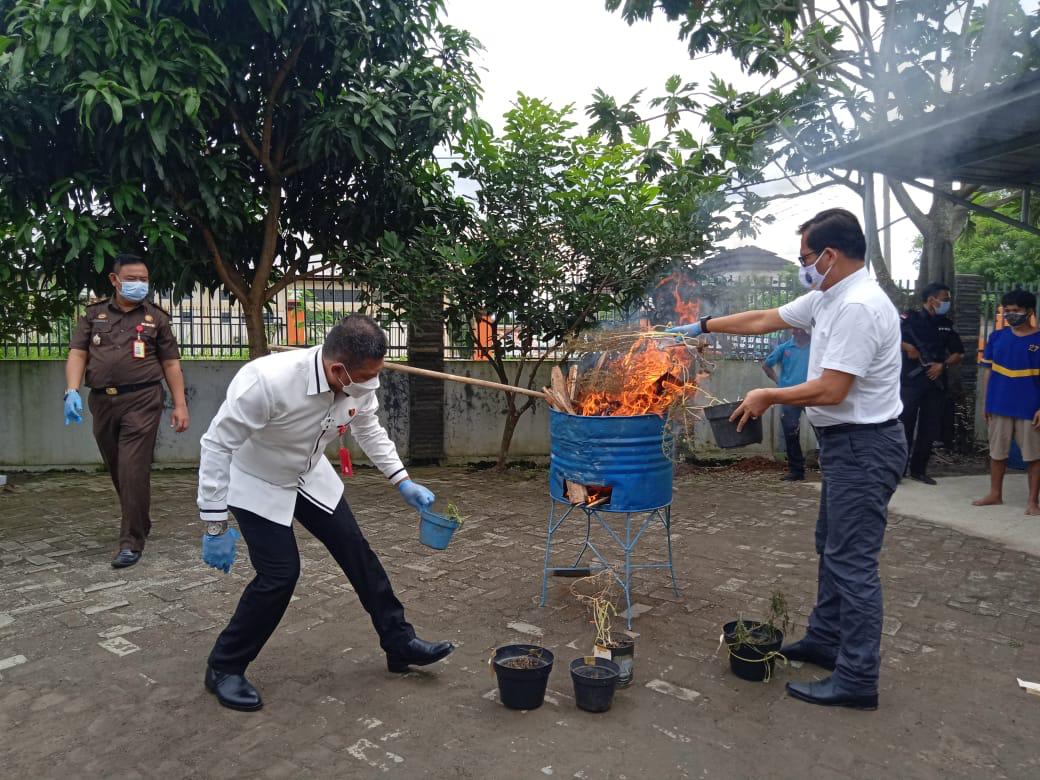 BNN Provinsi Banten kembali melakukan pemusnahan barang bukti narkotika berupa ganja seberat 1.3 Kg, 6 Pot berisi 11 pohon ganja dan sabu sebanyak 8 bungkus seberat + 1 Kg.