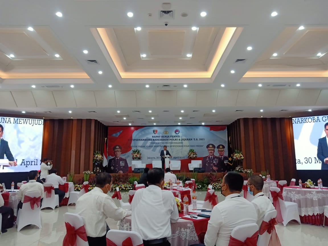 “Adapun tema dalam rapat kerja tahun ini ialah peningkatan profesionalisme penyidik tindak pidana narkoba guna mewujudkan Polri yang Presisi,” lanjut Lutfi Martadian.