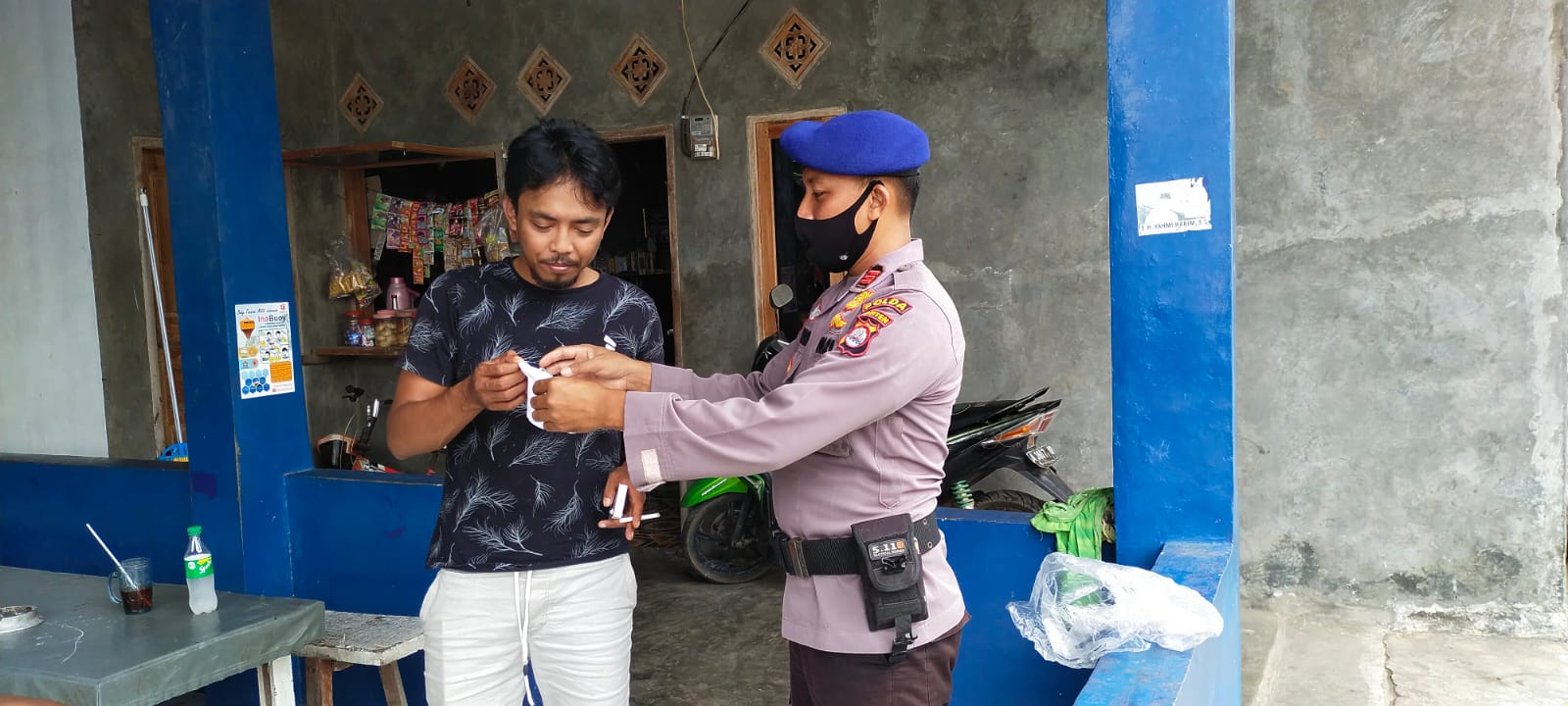 Berita Bidhumas Polda Banten , Serang- Guna mencegah penyebaran Covid-19, personel Ditpolairud Polda Banten bagikan puluhan masker kepada masyarakat pesisir yang berada di Pulorida, Kota Cilegon.
