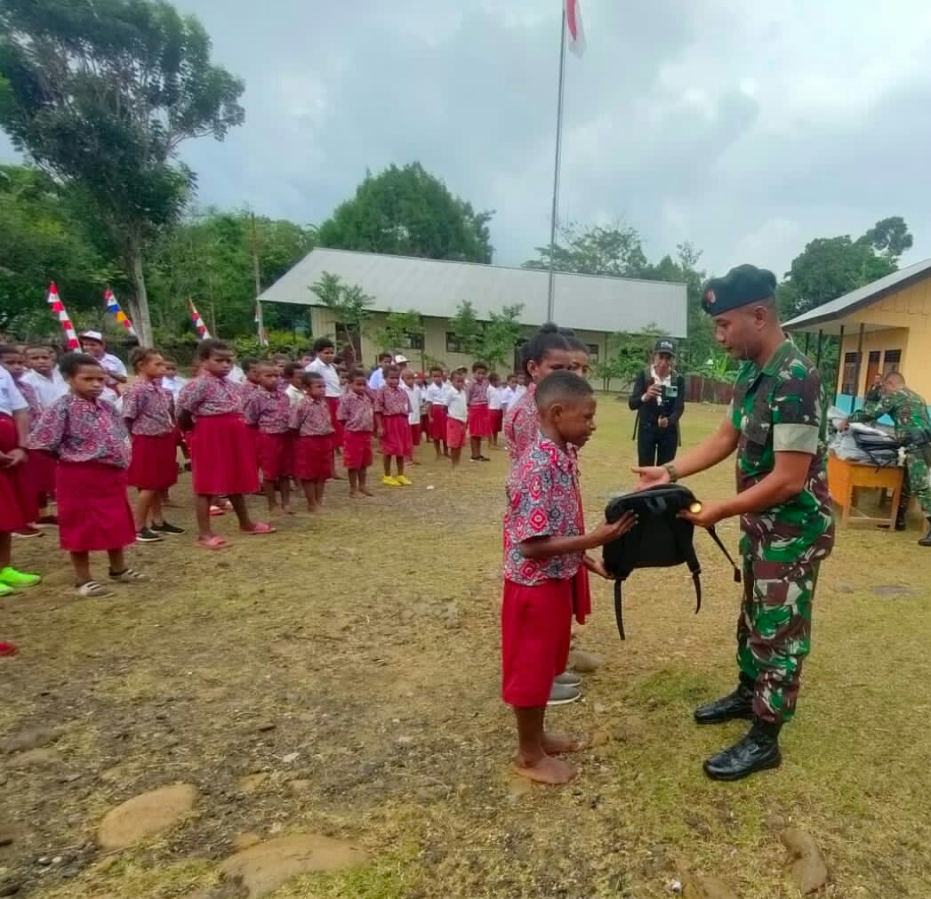 “Saya harapkan kepada anak-anak yang dibagikan peralatan sekolah ini, dapat menjaga dengan baik pemberian dari bapak Komandan, jangan pemberian ini dirusak atau nanti masa pakainya tidak lama,” ungkap Bapak Paul Yare.