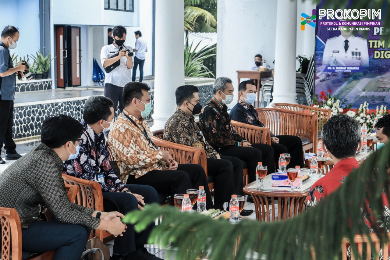 Pelaksanaan penandatanganan SK pembentukan TP2DD disaksikan oleh Wakil Bupati Ciamis Yana D Putra, Sekretaris Daerah Kabupaten Ciamis Tatang, Kepala Perwakilan Bank Indonesia Tasikmalaya Darjana, Kepala OJK Tasikmalaya Edi Ganda Permana, Pemimpin bank bjb Kantor Cabang (KC) Ciamis Moch Indra, SKPD terkait di tingkat Pemerintah Kabupaten Ciamis, bertempat di Joglo Barat Pendopo Bupati Ciamis, Rabu (7/34/2021).