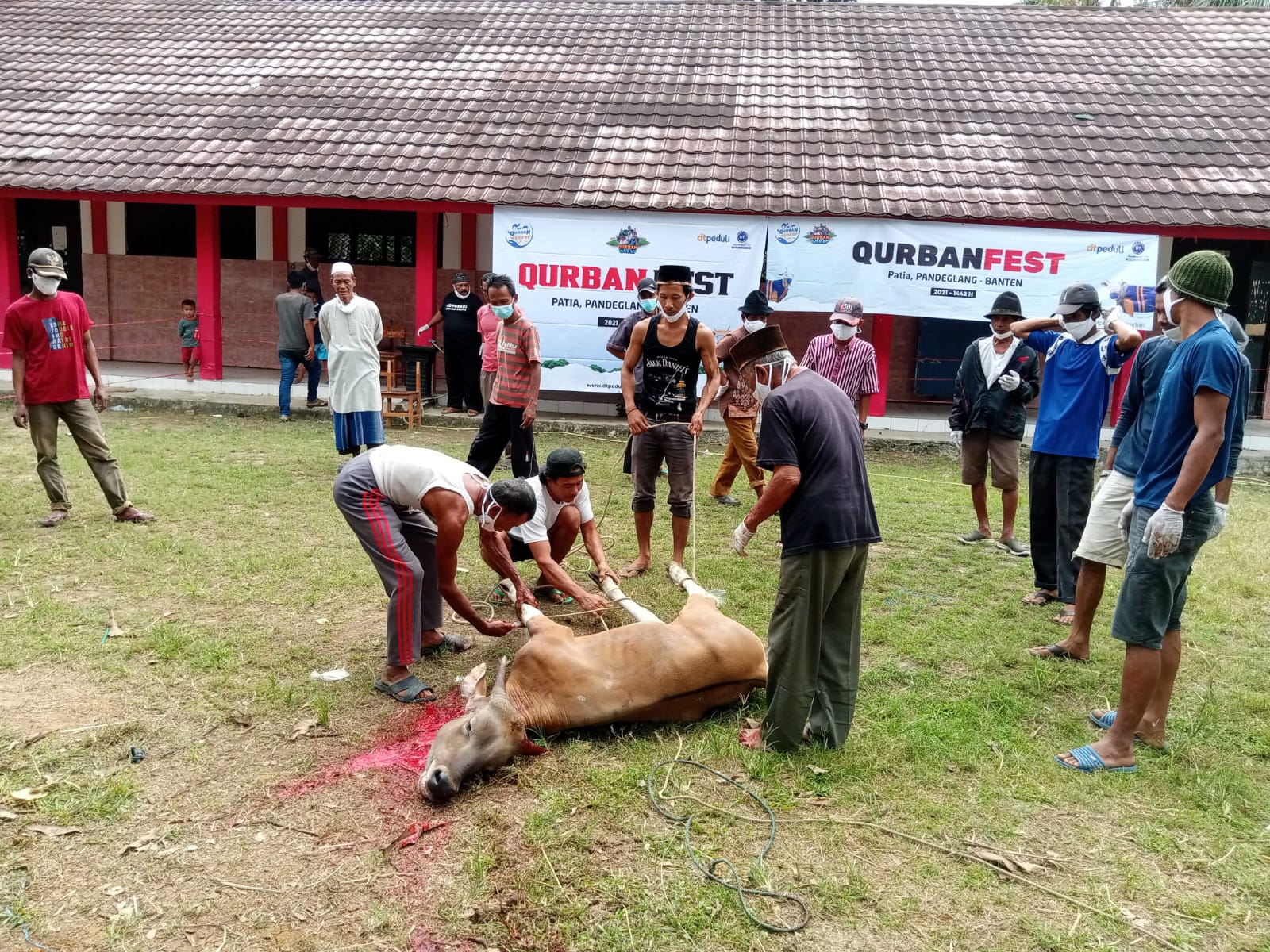 “Kami (DT Peduli) bersama koperasi Beuti Kamal Sejahtera, menyalurkan bantuan dua ekor sapi kurban. Agar masyarakat bisa merasakan atau memakan daging sapi, pada hari raya idul adha 1442 Hijriah,” kata Epul, usai melakukan pemotongan di Kampung Ciawi blok Impres, Desa Ciawi, Kecamatan Patia, (22/7/2021).