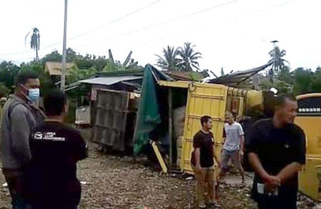 Kecelakaan itu menyebabkan mobil terguling dan menghantam warung bakso hingga hancur berikut sepeda motor. Tidak itu saja kecelakaan tersebut menyebabkan tiga orang termasuk pemilik warung mengalami luka-luka.