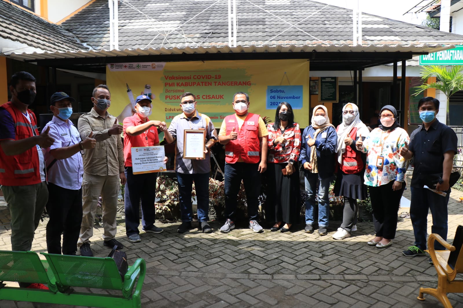 Berita Kab.Tangerang,- Dalam mendukung percepatan Vaksinasi diwilayah Kabupaten Tangerang, Palang Merah Indonesia (PMI) Kabupaten Tangerang bersama Lembaga Penjamin Simpanan terus melakukan vaksinasi di puskesmas Cisauk.