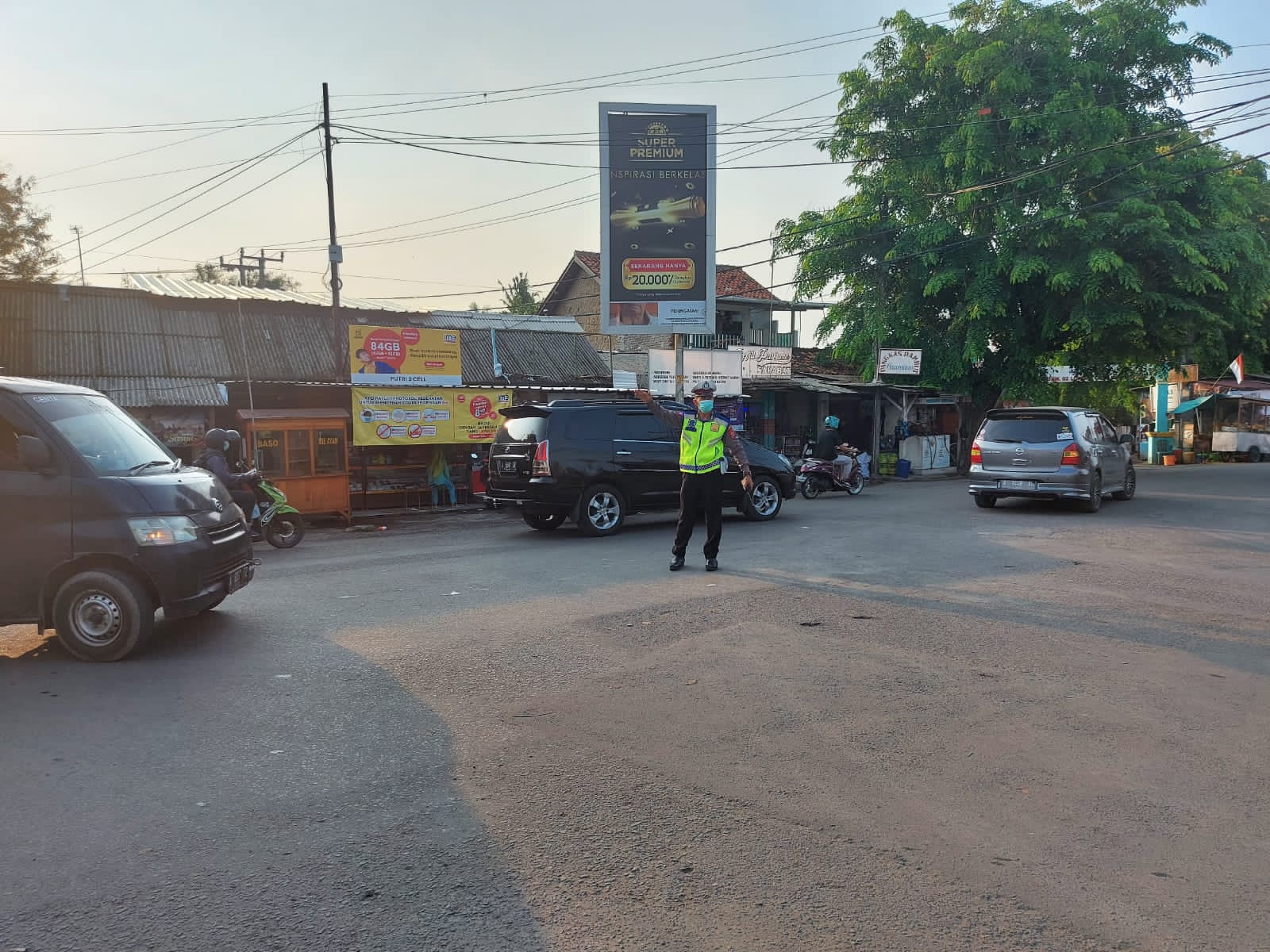 Menghimbau dan mengurai kemacetan kepada pengemudi kendaraan R4 dan R2 serta penyebrang jalan agar situasi lalin lancar.