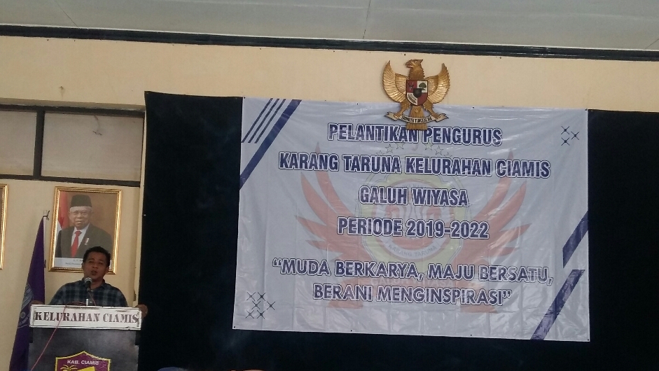 Pelantikan pengurus karang taruna yang diadakan di aula kelurahan Ciamis Kecamatan Ciamis Kabupaten Ciamis. dan dihadiri Tokoh Masyarakat, ketua RT RW sekelurahan Kelurahan Ciamia serta undangan lainnya .