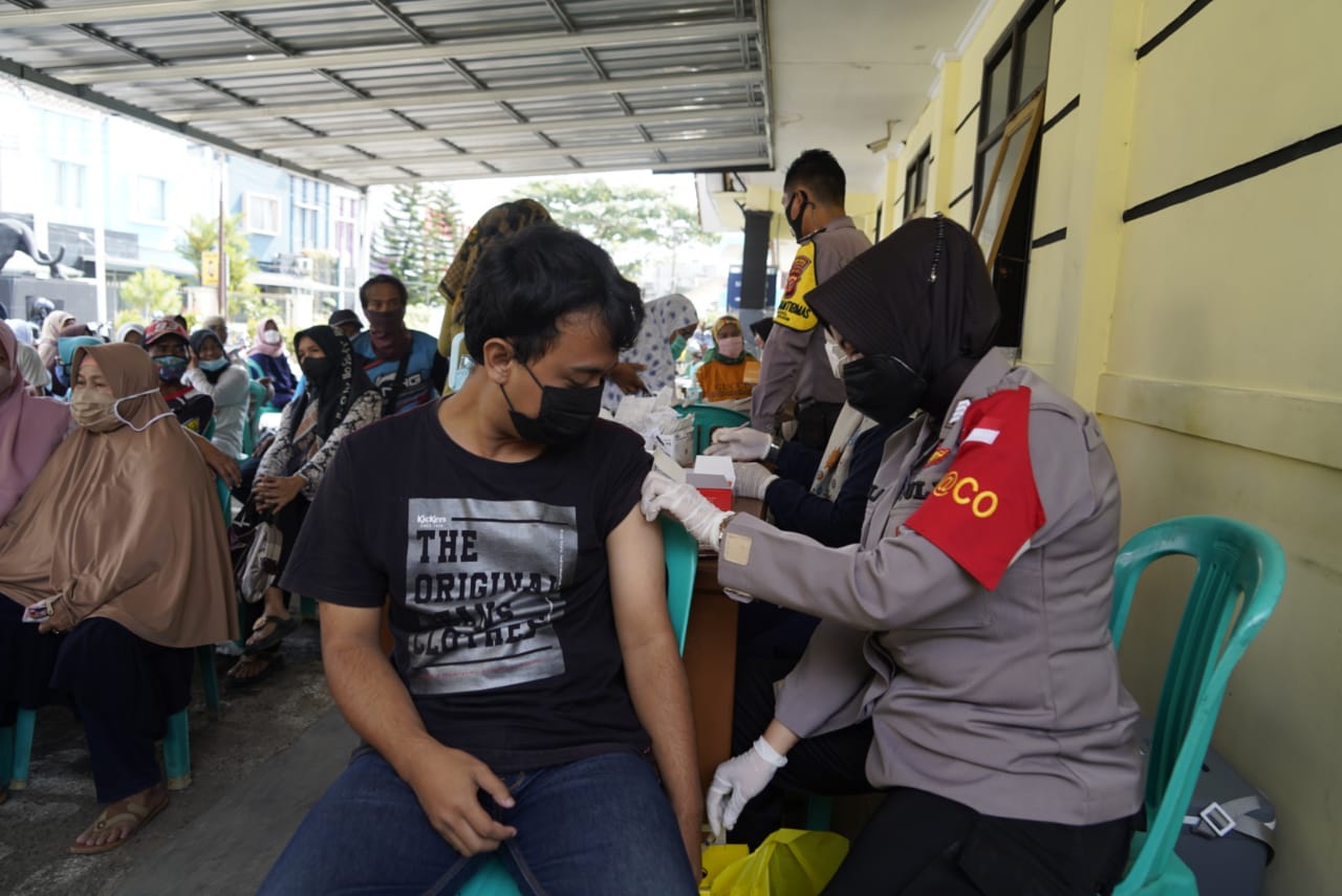 Berita Polres Tasik kota— Gerai Vaksin Presisi Polres Tasikmalaya Kota untuk Dosis Pertama diikuti ratusan warga bertempat di Mapolsek Mangubumi, Selasa (14/12/2021).