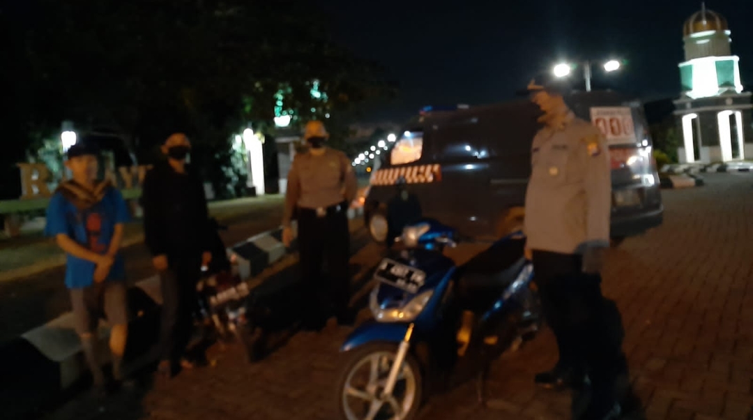 Saat melintas di Jalan Raya Sasahan Waringinkurung petugas menghampiri segerombolan anak muda sedang nongkrong / duduk-duduk di pinggir jalan,