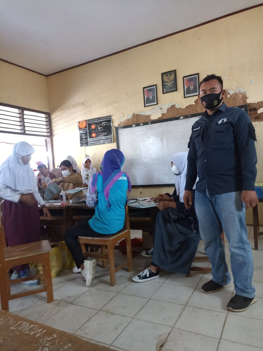 Berkaitan dengan kegiatan vaksinasi tersebut, personil Unit Intelkam Polsek Kramatwatu Polres Serkot Bripka Bripka Aldi Sulihat, S.H., lakukan pengamanan tertutup (Pamtup) sekaligus memantau jalannya vaksinasi.