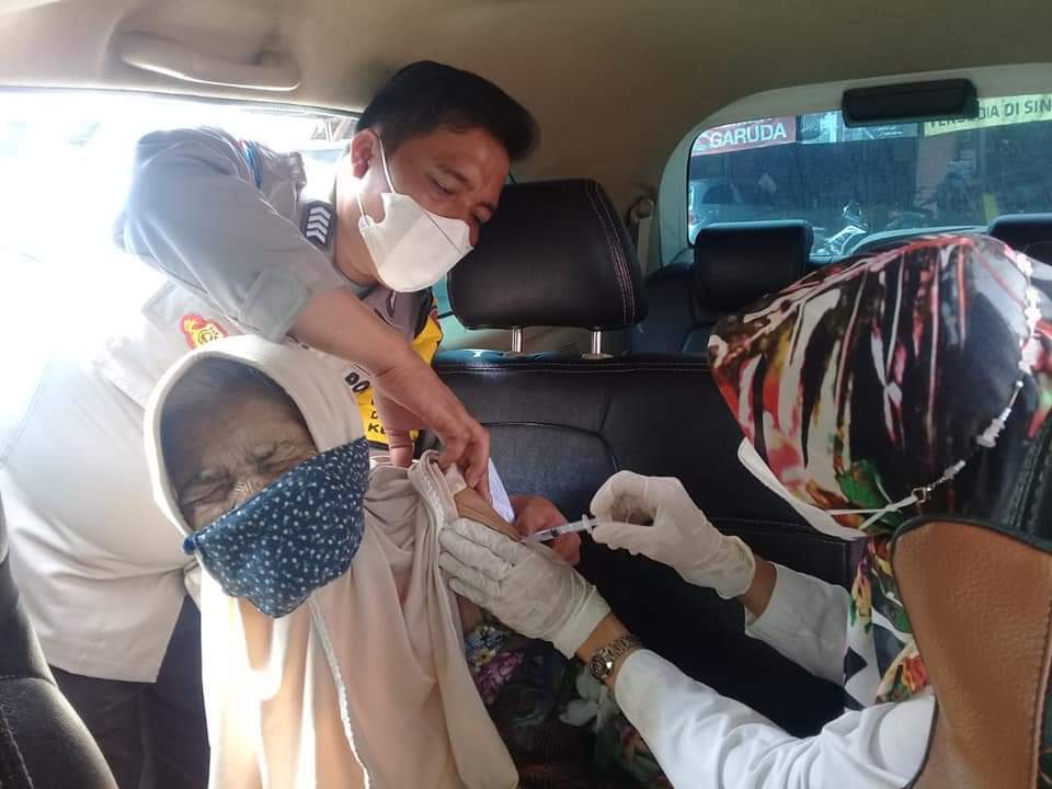 Bripka Rino mengatakan sengaja menjemput seorang lansia itu untuk di bawa ke PKM Jatiwangi untuk menjalani vaksinasi Covid-19, Selama ini Ibu Mariyah belum divaksinasi Covid-19 karena keluarganya tidak ada yang bisa mengantarkan ke lokasi vaksinasi.