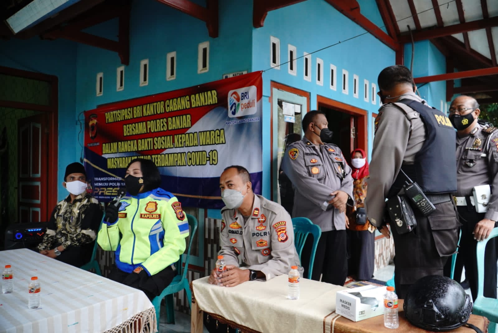 Rombongan yang berangkat dari Mapolres banjar menuju dusun sukaharja yang berjarak 35 Km tersebut bakti sosial Polres Banjar berkerja sama dengan Bank BRI Cabang Banjar, berbarengan HUT Polwan ke-73 dalam rangka membantu warga masyarakat yang terdampak Covid -19.