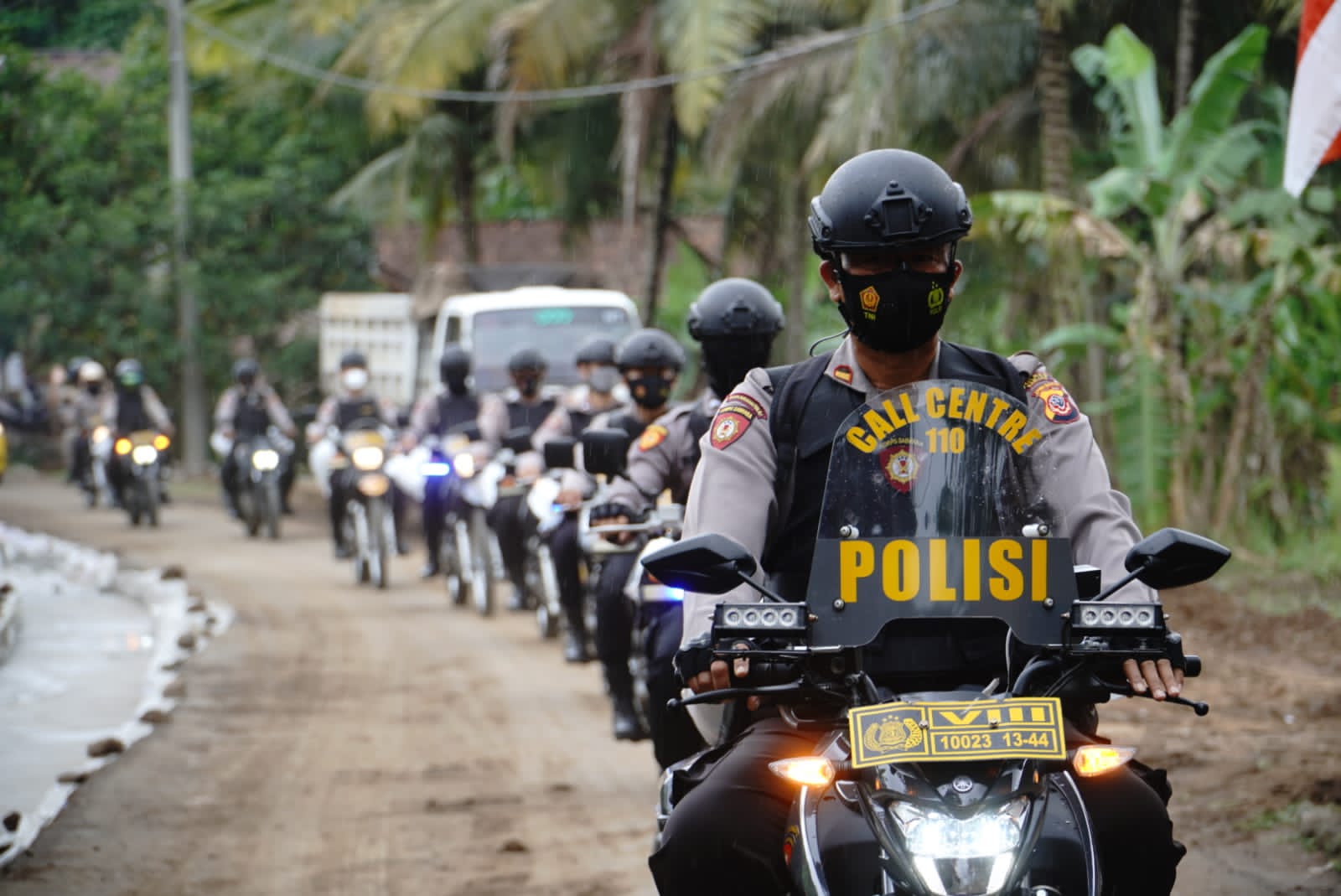 Penyaluran/ Penyerahan 34 Paket Bantuan Sembako yang berisikan Beras 5 Kg, Mie instan, Kecap, Susu kental, Gula, Teh, minyak dan Masker oleh Kapolres Banjar, Kasat Samapta IPTU HELMIZAR S.IP, Kbo Samapta IPTU MUH SUYANTO KARYADI beserta 8 Personil Dalmas Sat Samapta dengan menggunakan 9 Unit Sepeda Motor Suzuki Trail Sat Samapta dan 1 Unit Sedan Almira Patroli R4 , Beserta Jajaran Sat Lantas Polres Banjar, 34 Paket Sembako diserahkan kepada Kaum Disabilitas dan Jompo Warga Dusun Sukaharja Desa Karyamukti Kecamatan Pataruman Kota Banjar.