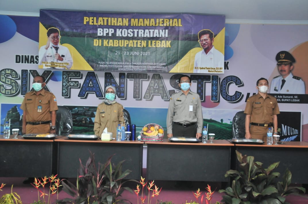 Berita Kab.Lebak-, Bupati Lebak Iti Octavia Jayabaya membuka secara resmi Kegiatan Pelatihan Manajerial Balai Pelatihan Pertanian Komando Strategis Petani (BPP Kostratani), bertempat di Aula Dinas Pertanian Kabupaten lebak, Senin (21/06/2021).