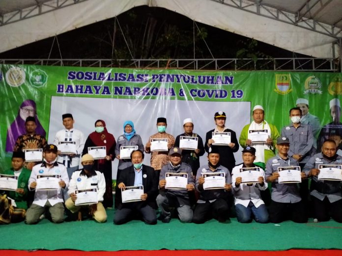 Berita BEKASI -Jabar–Lembaga Anti Narkotika (LAN) Kab Bekasi bersama Laskar Panji Raya Indonesia (LPRI) adakna giat sosialisasi penyuluhan bahaya narkoba dan covid 19, Kegiatan di adakan di pondok pesantren Halqoh El- Istigosah, RT 001/003 Desa Karangraharja, Kecamatan Cikarang Utara, Kabupaten Bekasi, Jawa Barat. Sabtu, (07/11/2020.)