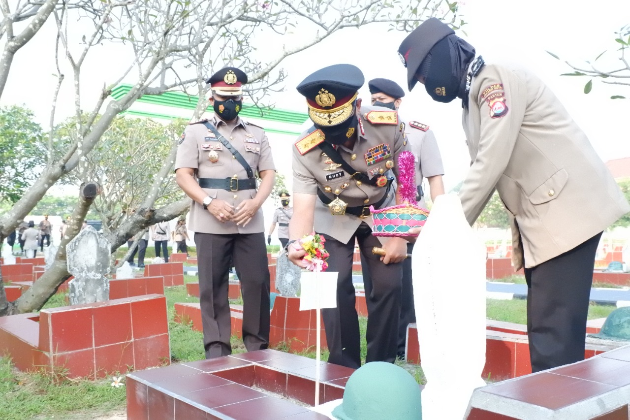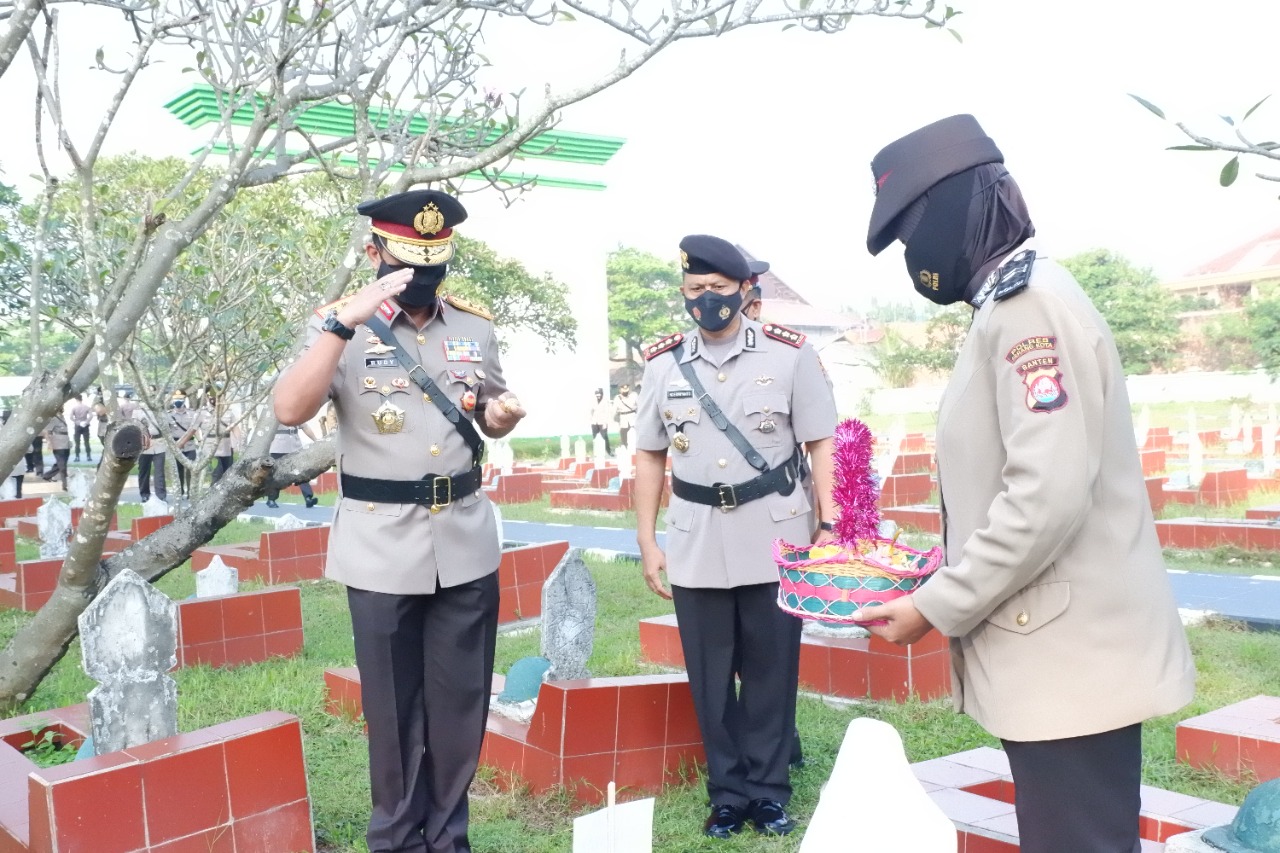 Berita Polres Kota Serang – Dalam rangka hari Bhayangkara ke 75 tahun 2021, Polda Banten dan Polres Serang Kota menggelar ziarah dan upacara tabur bunga di Taman Makam Pahlawan (TMP) Ciceri Kota Serang , Selasa (29/06/2021).