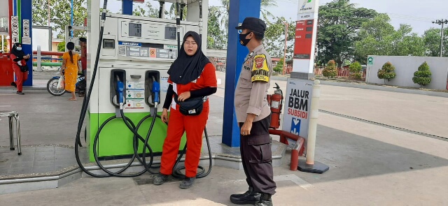 Personel juga memberikan himbauan kepada masyarakat serta petugas SPBU untuk tetap berhati-hati dalam beraktivitas.