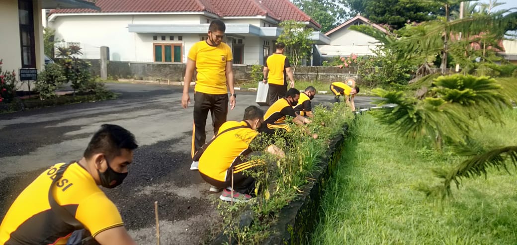 “Selain itu, di tempat di Bekerja dibuat nyaman, salah satunya menjaga kebersihan dan keindahan di lingkungan kita Bekerja” ucap Kapolsek Banjar.