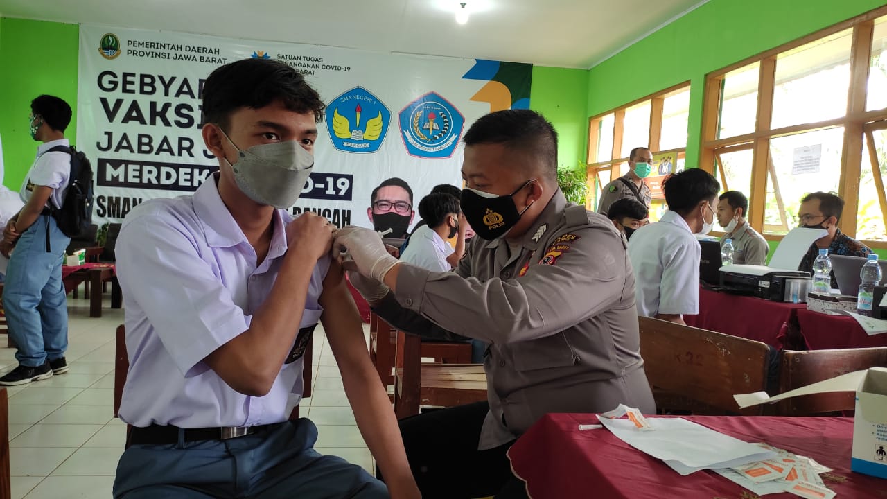 Berita Polres Ciamis – Jajaran Kepolisian Resor Ciamis Polda Jabar melaksanakan pengamanan kegiatan vaksinasi dalam rangka percepatan herd immunity. Pengaman kali ini salah satunya di laksanakan di lingkungan SMA Negeri 1 Rancah, Desa Rancah, Kecamatan Rancah, Kabupaten Ciamis, Jawa Barat, Selasa (31/08/2021).