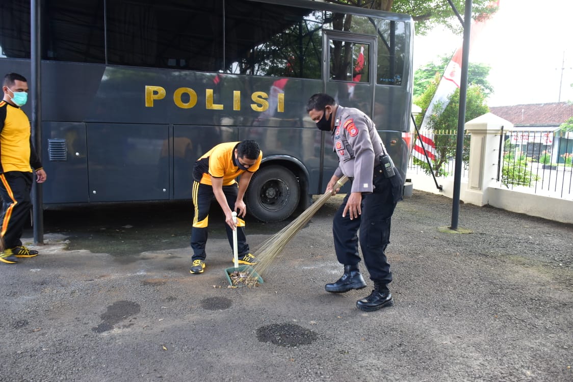 Arahan kepada Personel, Kapolres Banjar perintahkan untuk menjaga ruangan dan halaman Mako Polres Banjar sebagai upaya nyata melindungi dan mengedukasi anggota Polres akan pentingnya pola hidup bersih untuk menjaga kondisi tubuh tetap sehat di masa Pandemi Covid-19.