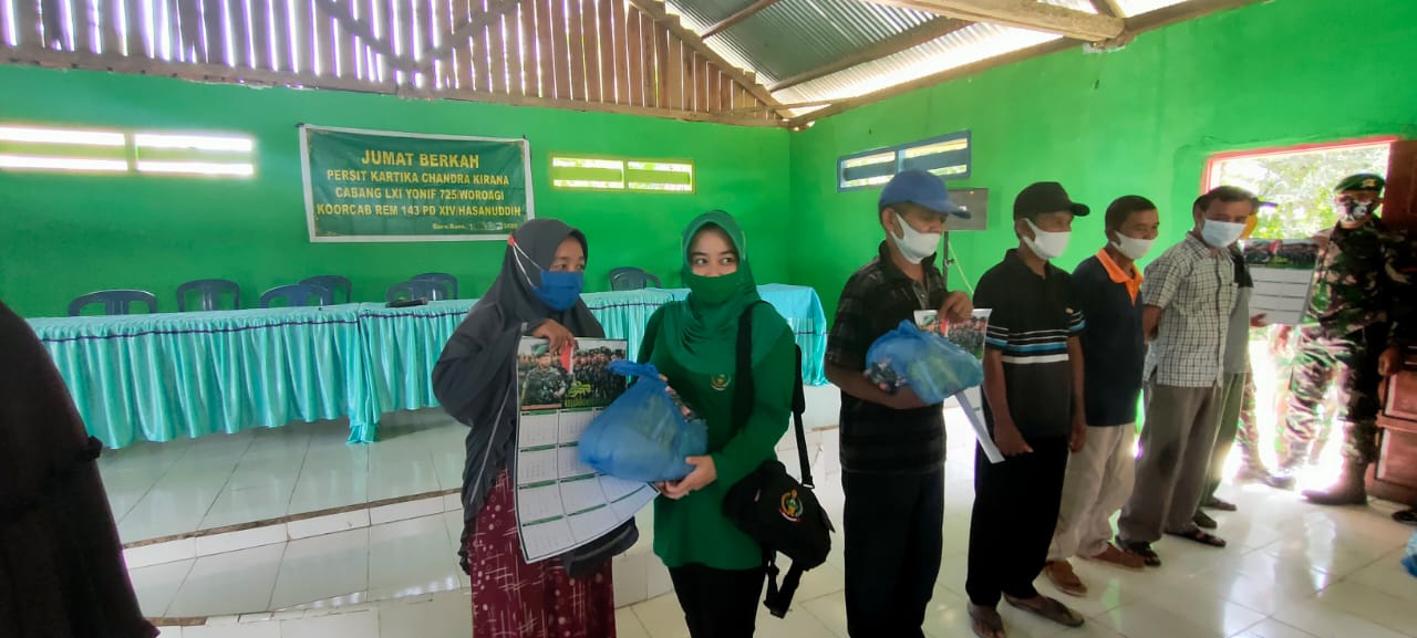 “Setiap hari Jum’at, baik itu prajurit maupun Persit Yonif 725/Woroagi secara rutin menggelar kegiatan Jum’at berkah, hal ini sejalan dengan petunjuk dari Bapak Pangdam XIV/Hasanuddin Mayjen TNI Andi Sumangerukka untuk melaksanakan kegiatan sosial yang hasilnya dapat bermanfaat dan dirasakan oleh masyarakat,” ujar Fiqi Istiandara.