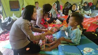 Beberapa titik tenda pengungsian pun menjadi lokasi pelayanan sebagai bentuk Kepedulian Polri terhadap masyarakat. Salah satu pelayanan yang diberikan adalah mendatangkan Polisi Wanita (Polwan) di lokasi pengungsian, Senin (5/12/2022).