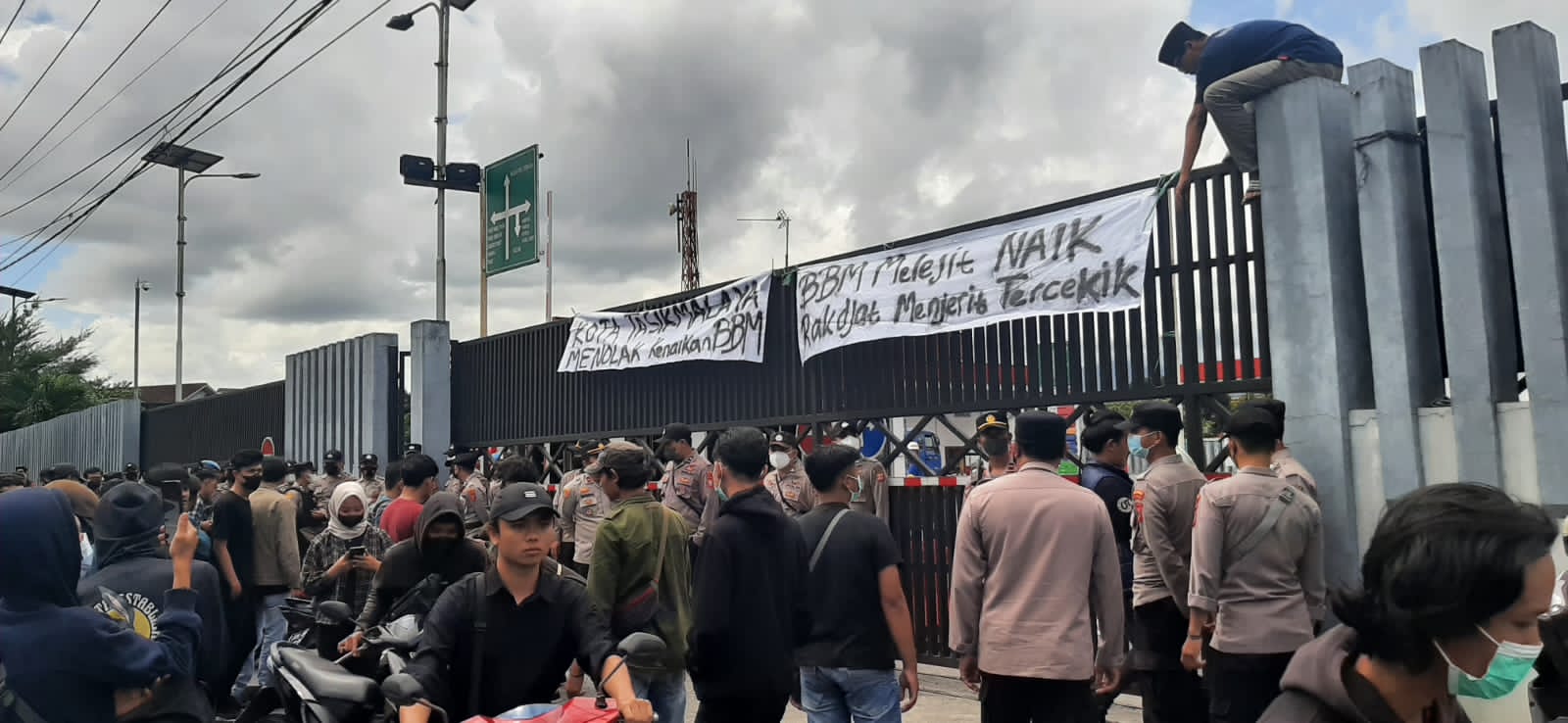 Baraknews Polda Jabar—Aksi demo mahasiswa yang tergabung dalam Serikat Mahasiswa Tasikmalaya (SEMATA) di depan Depo Pertamina Tasikmalaya pada Rabu, 6 April 2022 lalu diwarnai aki pembakaran ban bekas oleh massa aksi.