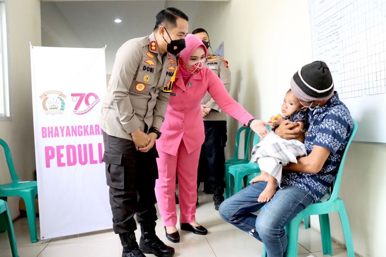 Baraknews Polda Jabar–Kapolres Cianjur Polda Jabar AKBP Doni Hermawan, S.H., S.I.K., M.Si bersama Ketua Bhayangkari Cabang Cianjur Ny. Ristra Doni Hermawan melaksanakan peninjauan khitanan massal di RS Bhayangkara Cianjur, Rabu (15/06/2022).