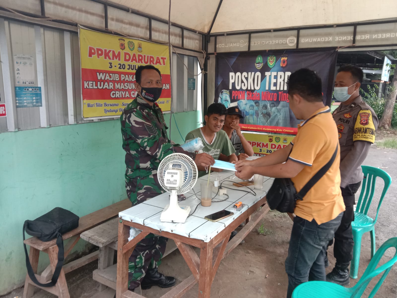Berita Polda Jabar—Bhabinkamtibmas Desa Kalikoa Polsek Kedawung Polres Cirebon Kota Polda Jabar Aipda M.Sonny.K.SE bersama Babinsa Serma M.Soleh bagikan masker secara gratis kepada masyarakat didesa Binaannya di Desa Kalikoa Kec.Kedawung Cirebon, Jum’at (12/11/2021).