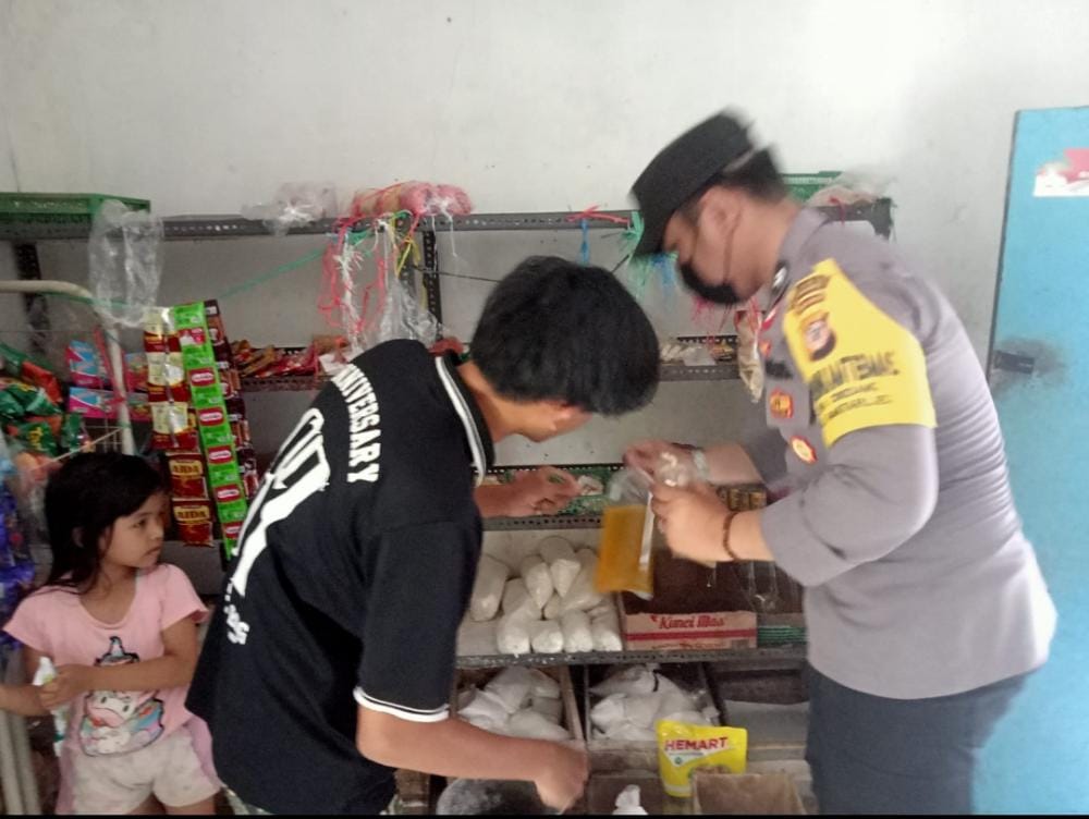Baraknews Polda Jabar—Kanit Binmas Polsek Bantarujeg Polres Majalengka Polda Jabar Aiptu D Yusuf dan Bhabinkamtinmas Desa Cikidang Briptu Agung Gumelar monitoring ketersediaan dan harga minyak goreng di wilayah hukum polsek bantarujeg, kamis (31/03/2022).