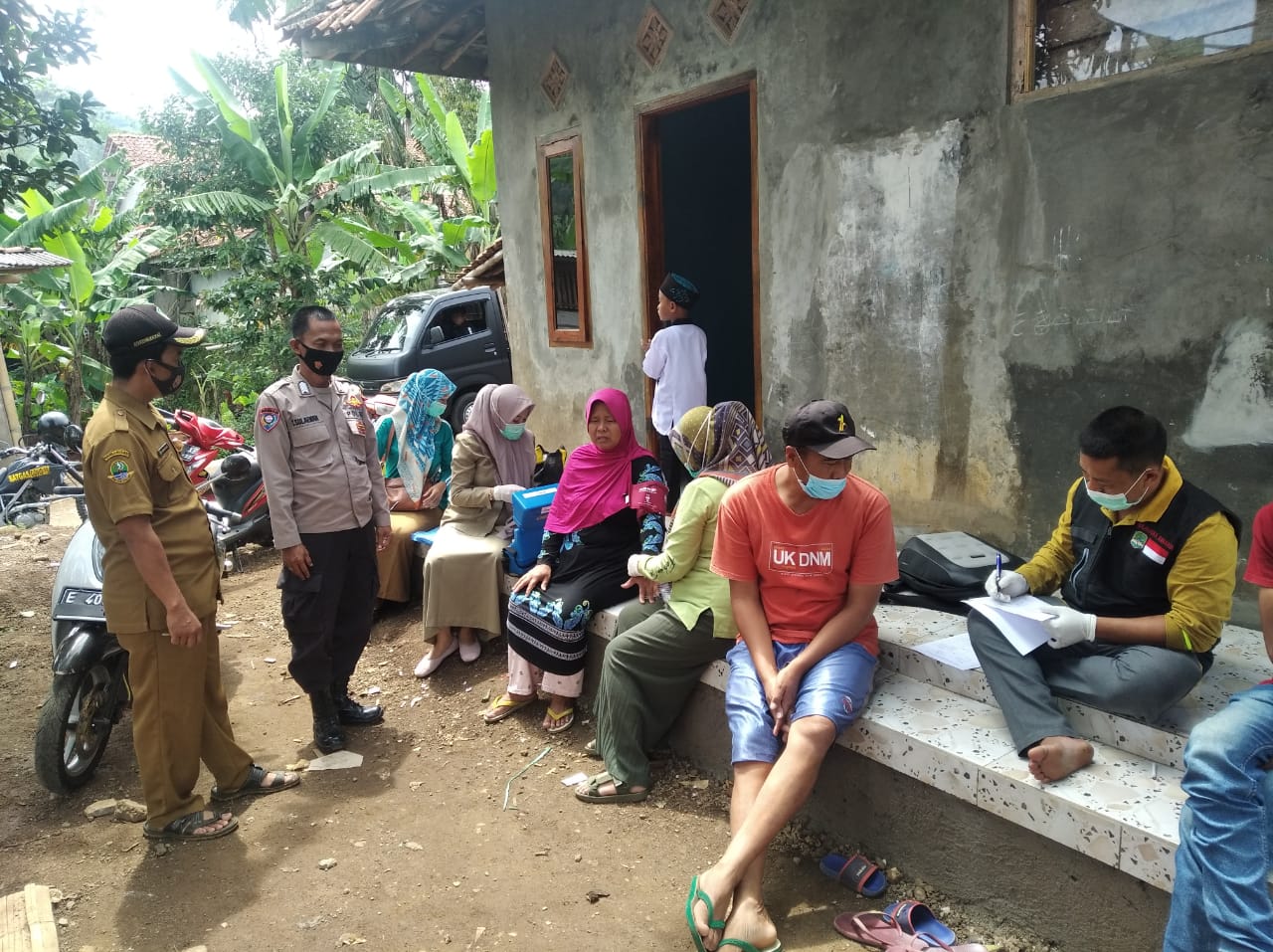 Berita Polda Jabar—Kanit Binmas Polsek Cingambul Polres Majalengka Polda Jabar Bripka Titing Sulaeman monitoring kegiatan Gebyar Vaksinasi dengan cara door to door di wilayah hukum Polsek cingambul. Kamis (25/11/2021).
