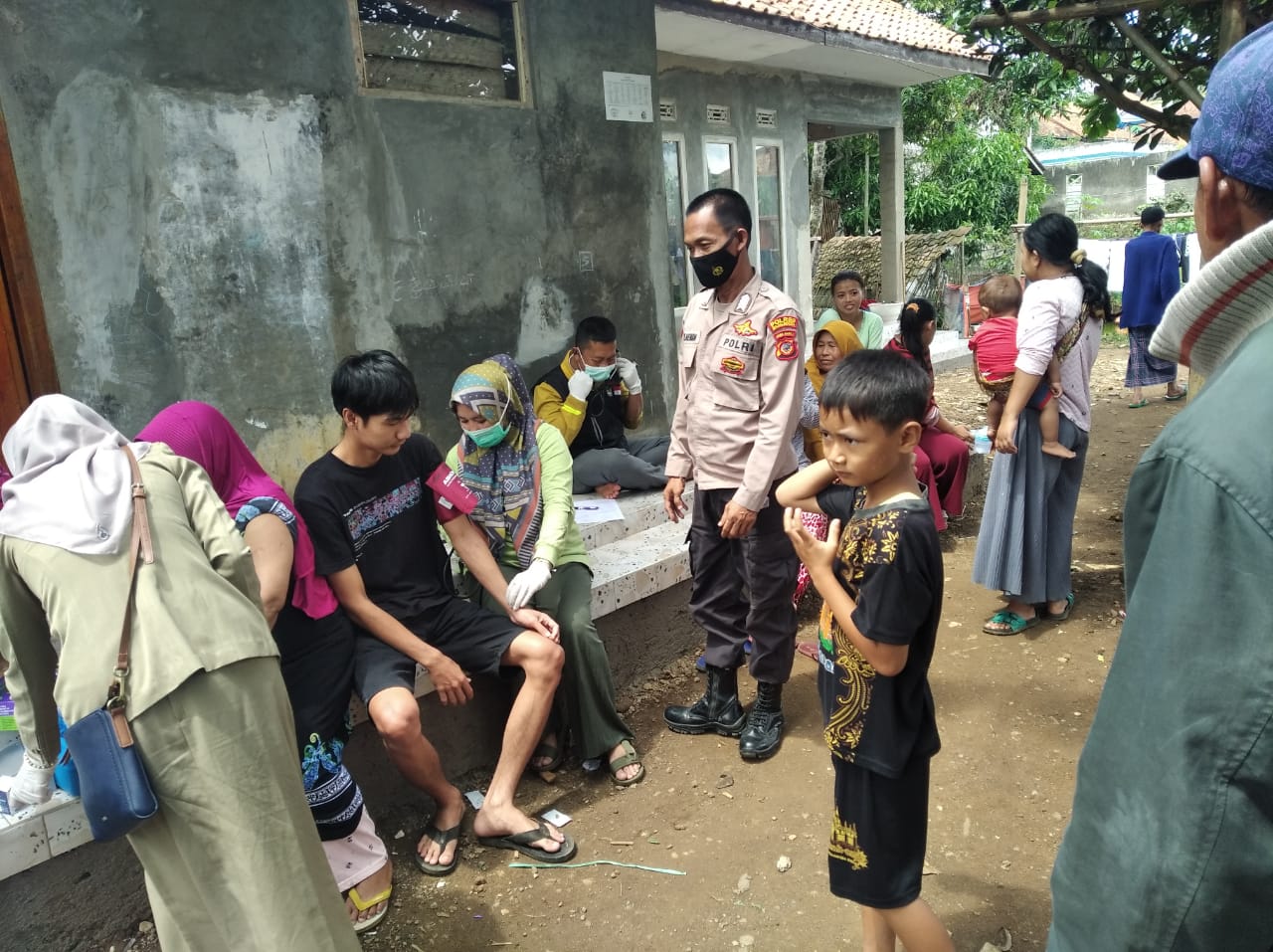 Kanit Binmas Polsek Cingambul Polres Majalengka Polda Jabar Bripka T. Sulaeman bersama Pemerintahan Desa maniis kecamatan Cingambul monitoring kegiatan vaksinasi covid-19 dalam rangka percepatan vaksinasi nasional tahun 2021.