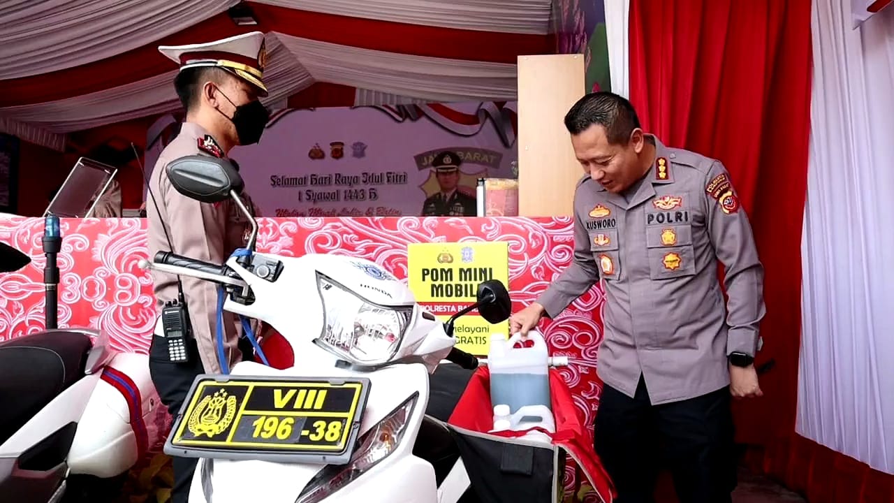 Baraknews Polda Jabar–Memasuki H-8 Lebaran Idul Fitri 1443 H, Kapolresta Bandung Polda Jabar Kombes Pol Kusworo Wibowo didampingi Waka Polresta Bandung AKBP Dwi Indra Laksmana mendatangi Pos Terpadu Cileunyi.