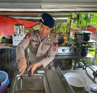 Baraknews Polda Jabar–Bertempat di Posko IBC anggota Polri menyiapkan dan menyajikan makanan yang sehat dan bergizi di food truck dapur Lapangan, dengan keahlian memasak, juru masak Polri tersebut menyiapkan masakan untuk para anggota yang akan melaksanakan tugas.
