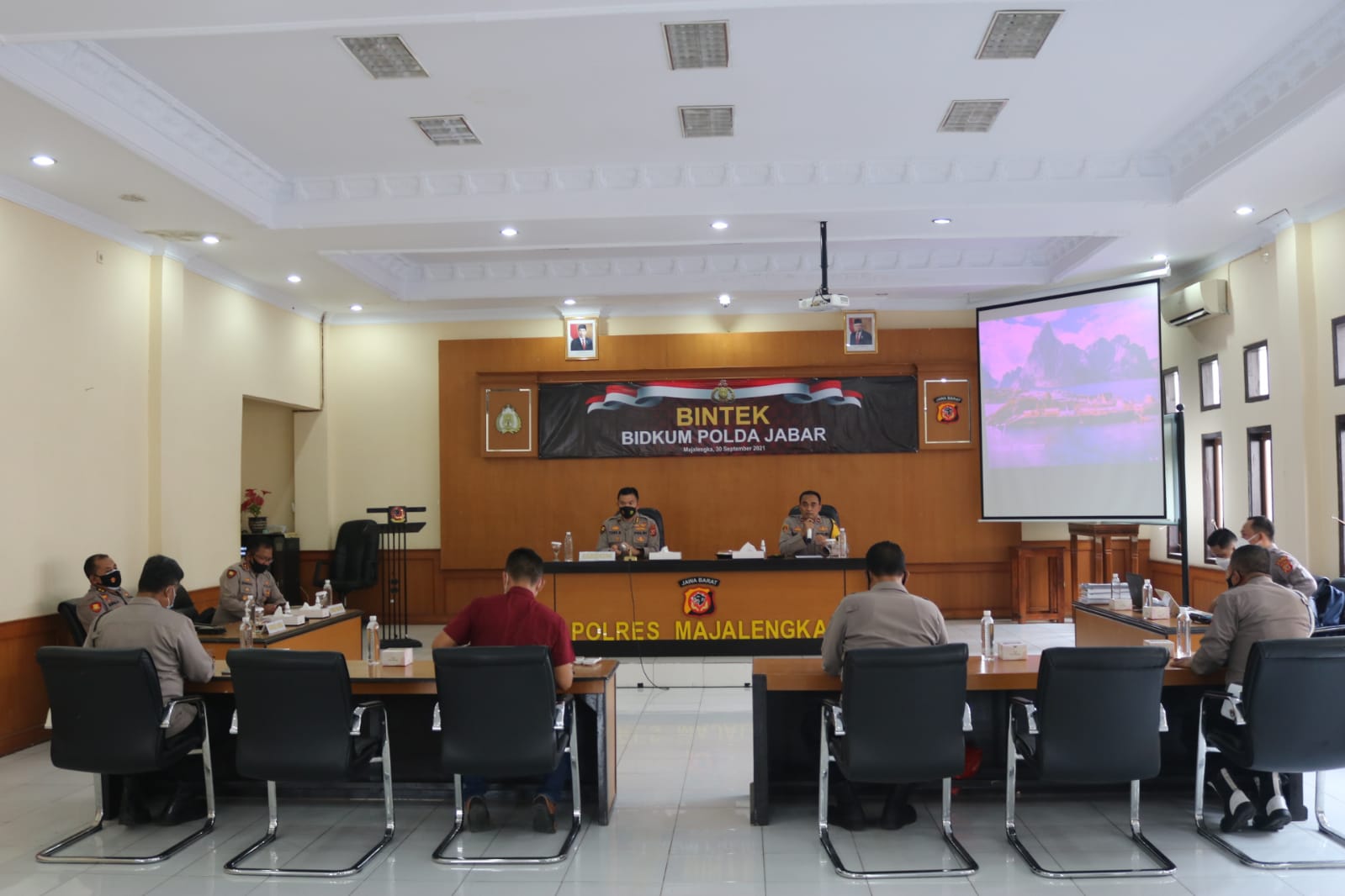 Ketua Tim Kabidkum Polda Jabar Kombes Pol. Tony Binsar S.H., S.IK., didampingi AKBP Bambang Sugito Kasubbid Sunluhkun dan AKBP Agus Kasubbid Bankum, pimpin pelaksanaan kegiatan Bintek Bidkum Polda Jabar di Jajaran Polres Majalengka.