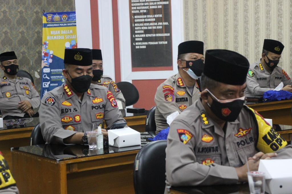 Berita Polda banten– Kepala Kepolisian Daerah (Kapolda) Banten Irjen Pol Dr. Rudy Heriyanto Adi Nugroho didampingi Wakapolda dan para PJU Polda Banten menghadiri kegiatan Zikir dan Doa Kebangsaan dalam rangka 76 Tahun Kemerdekaan Indonesia yang diadakan secara virtual di Ruang Vicon, Mapolda Banten. Minggu (01/8/2021) malam.