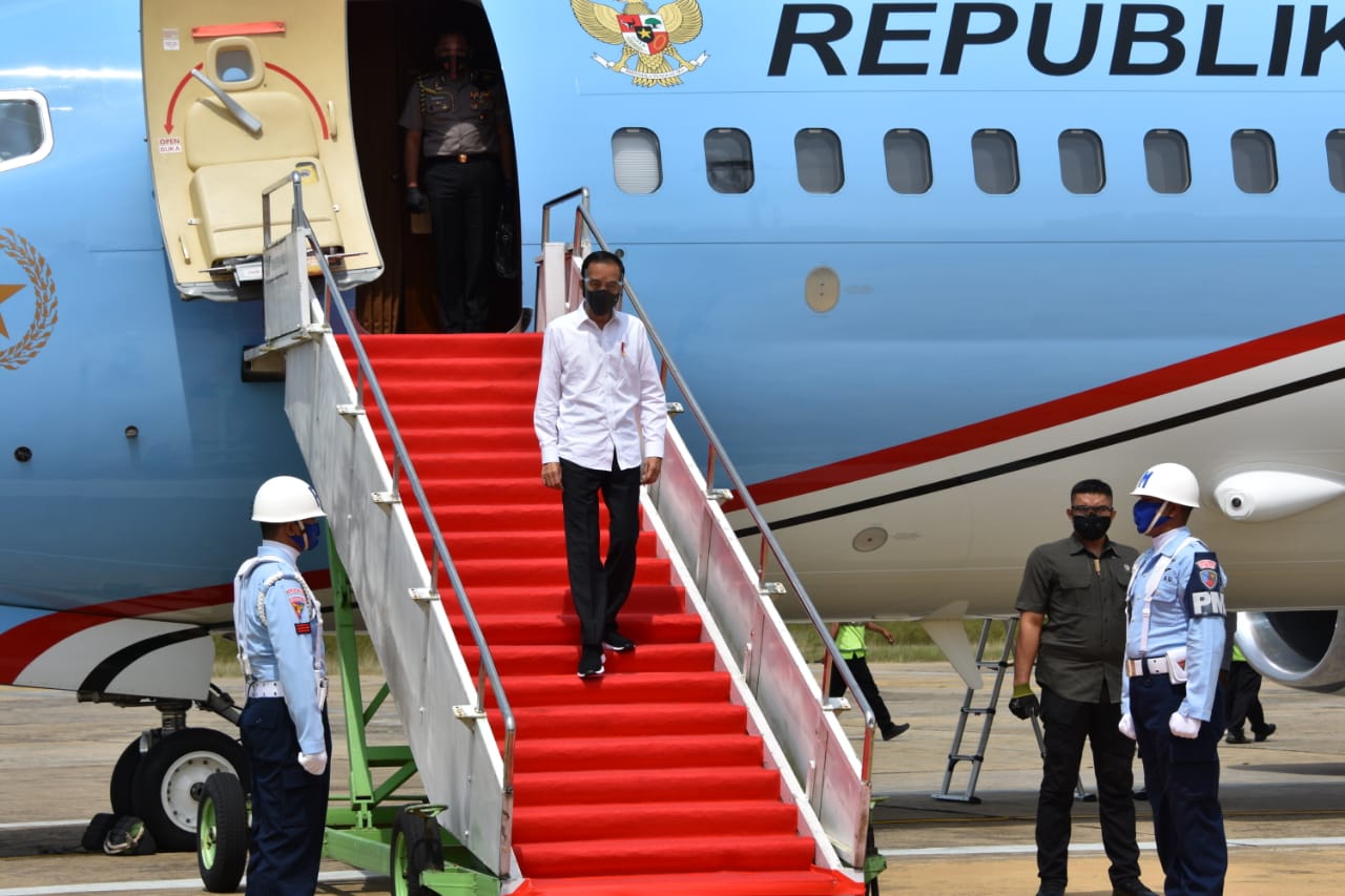 Dari Bandara Tjilik Riwut, Presiden RI dan rombongan serta Kapolda langsung menuju ke Pulang Pisau dengan menggunakan helikopter super puma.