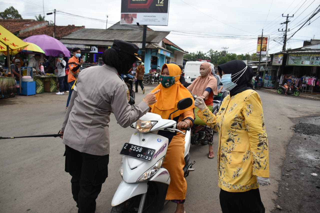 Kapolres bersama Walikota Banjar dengan didampingi Personel Gabungan TNI Polri, Pol PP, Dan Dishub menghampiri para pedagang, pengunjung, maupun pengendara ingatkan Protokol Kesehatan yang harus selalu dipatuhi.