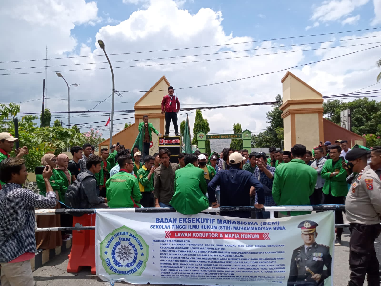 Kolap Aksi, Anton Wijaya, dalam orasinya menegaskan seluruh pendapat dan fakta peristiwa pidana yang disampaikan oleh teman-teman nya tersebut benar dan dalil nya jelas. “merujuk pada bukti-bukti yang dikemukakan dan dijelaskan, maka kami dari BEM STIH MUHAMMADIYAH BIMA mendesak Polres Bima Kota Segera Tetapkan tersangka Boimin atas Kasus korupsi dana PKBM KAROKO MAS yang diduga merugikan keuangan negara Rp. 1,80 Milyar, Tangkap dan tahan Boimin karena tidak koperatif dan akomodatif selama proses hukum berjalan sebab itu perbuatan yang sengaja menghalang-halangi dan memperlambat kinerja penyidik serta diduga kuat menghilangkan barang bukti, Segera surati Polda NTB dan Mabes Polri agar meminta pihak Bank melakukan print out rekening koran PKBM KAROKO MAS karena terduga pelaku tidak akomodatif.