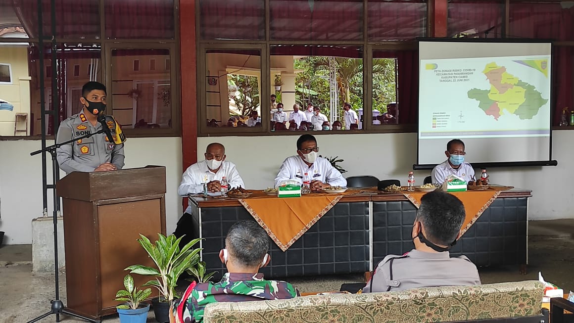 Berita Polres Ciamis – Kapolres Ciamis AKBP Wahyu Broto Narsono Adhi, S.I.K., M.Sc.Eng., bersama Bupati Ciamis H. Herdiat Sunarya melaksanakan sosialisasi bahaya varian baru virus corona di wilayah Perbatasan. Sosialisasi ini dilaksanakan di Aula Kantor Kecamatan Panawangan, Kabupaten Ciamis, Jawa Barat, Rabu (23 Juni 2021).